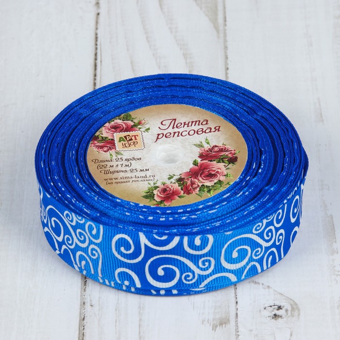 Лента репсовая "Узоры", 25мм, 22±1м, цвет белый