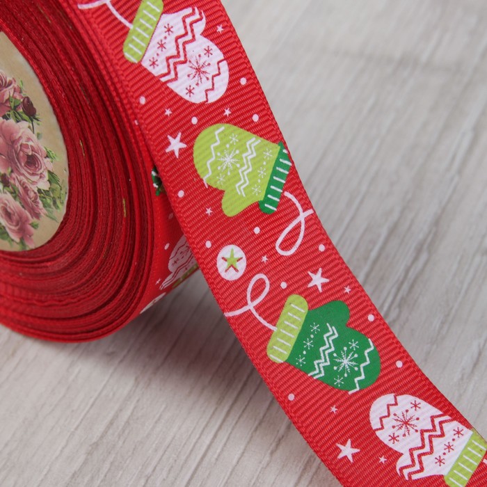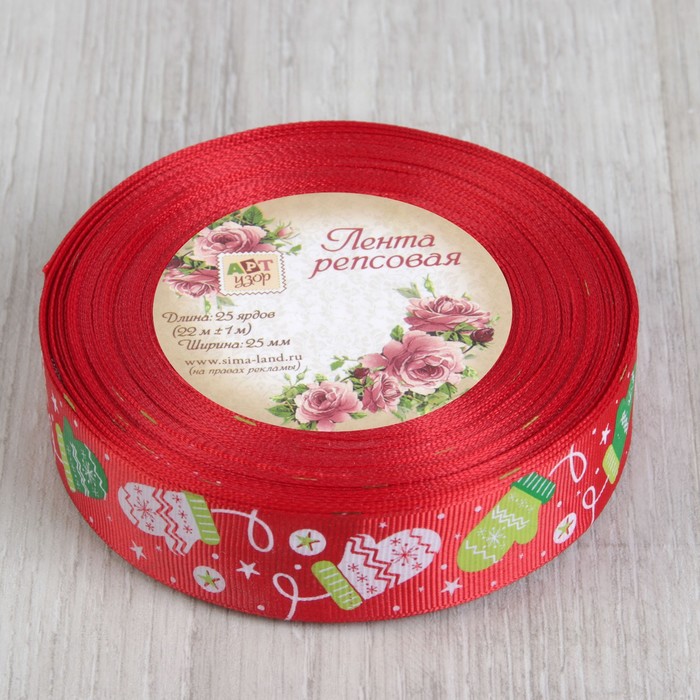 Лента репсовая «Варежки», 25мм, 22±1м, цвет красный