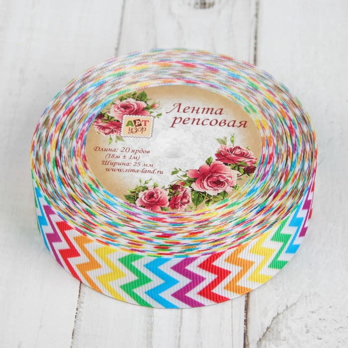 Лента репсовая «Зиг-заг», 25мм, 18±1м, разноцветная