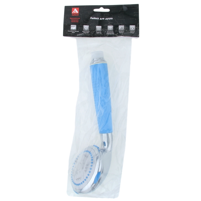 Лейка душевая Argo, массажная, 5 режимов, с голубой ручкой