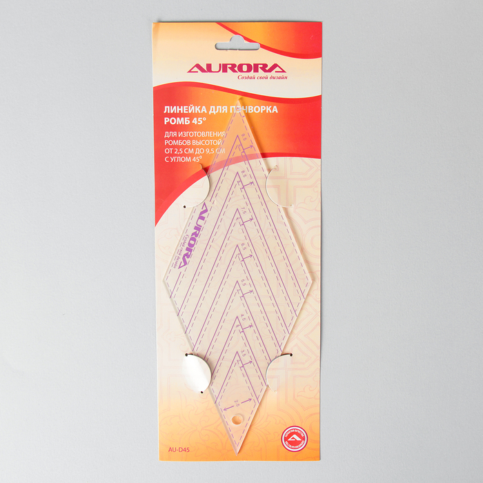 Линейка для пэчворка, 9,5см, 45 градусов, цвет прозрачный