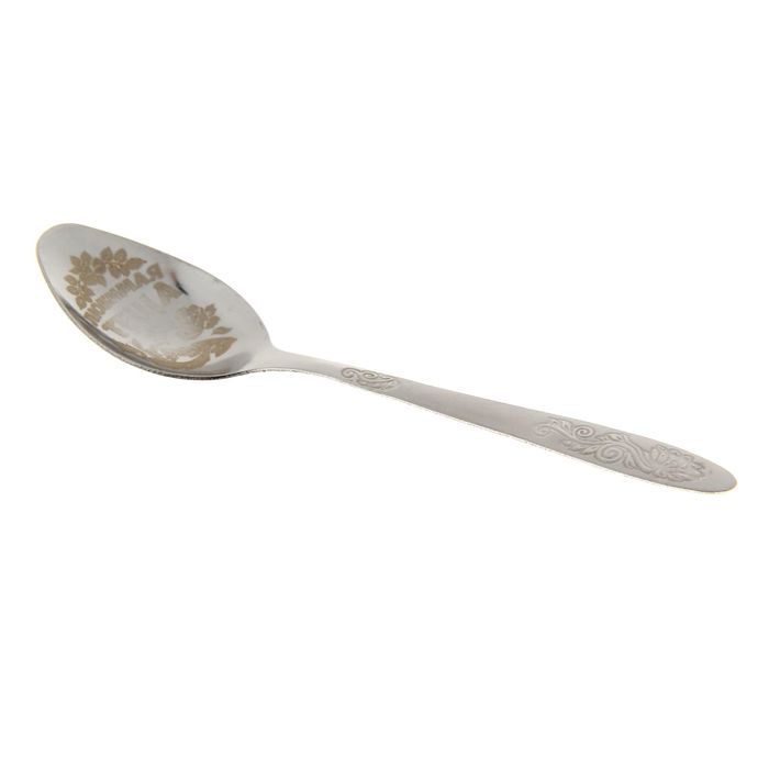 Ложка с лазерной гравировкой и изящной рукояткой преподносится на красочной открытке. На оборотной стороне изделия специально отведено место для подписи: кому и от кого был вручён подарок.