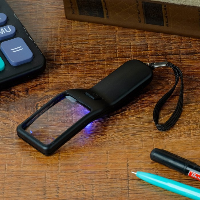 Лупа 2.5х, прямоугольная, с ручкой, микс, 12.5х4х2 см