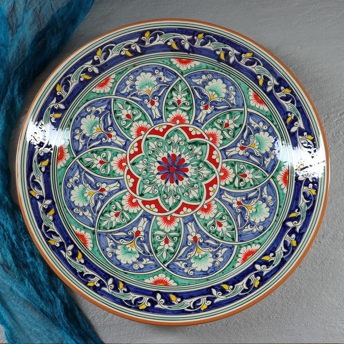 Ляган круглый «Риштан», 41 см, синий, в центре узор цветной