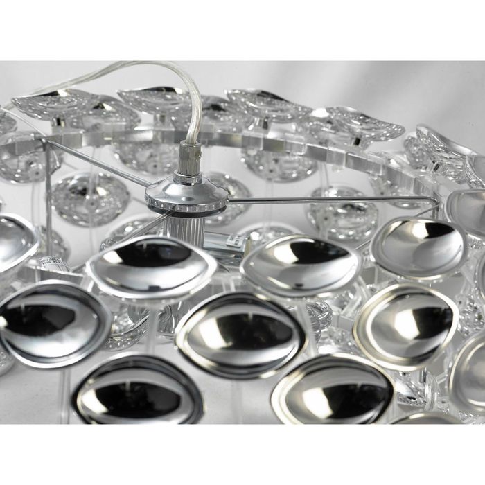 Прозрачные плафоны смонтированы на металлическом основании, которое блестит при попадании на него света. В корпусе находится высококачественная проводка. Она соответствует европейскому стандарту безопасности, не боится перепадов напряжения и обеспечивает долговечную эксплуатацию прибора.