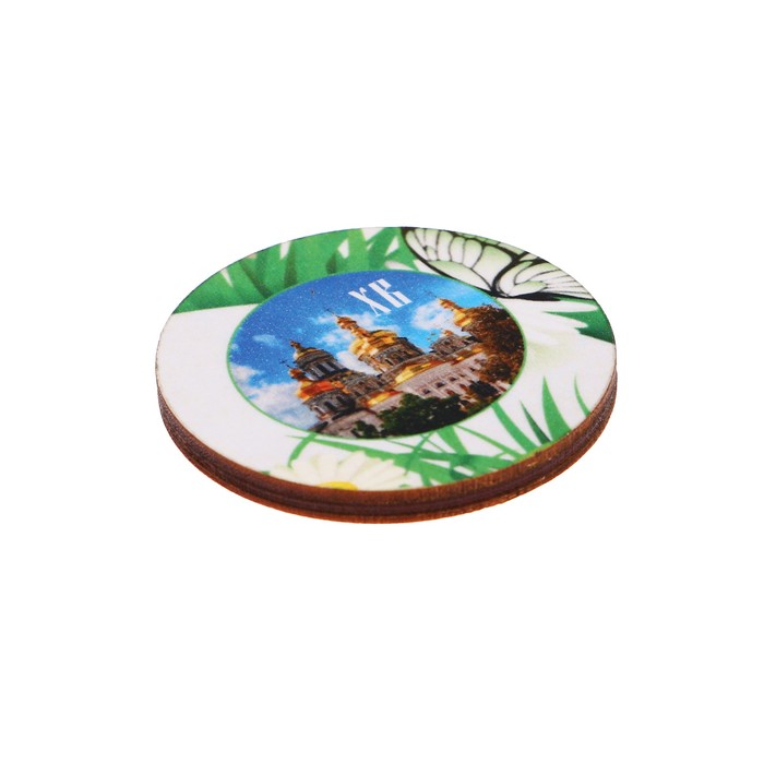 Магнит "ХВ" храм, бабочки; ассорти, 40 мм