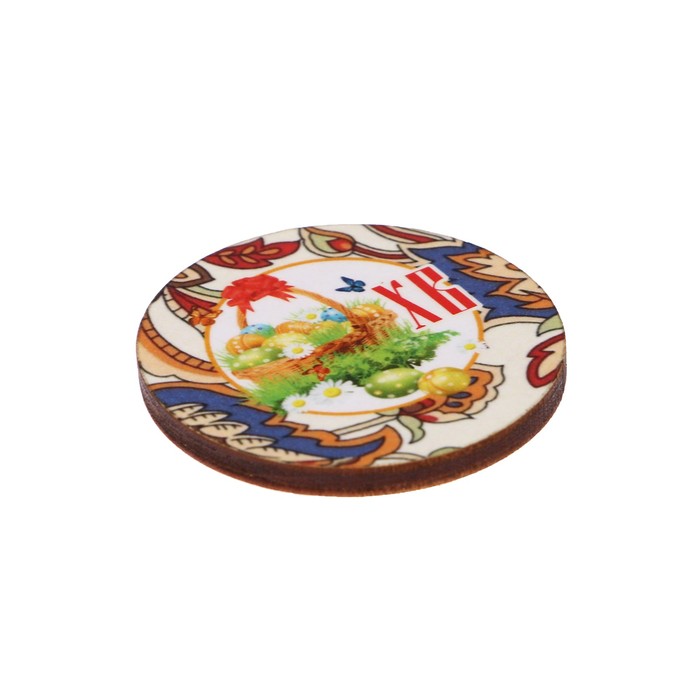 Магнит "ХВ" корзинка пасхальная с бантиком; ассорти, 40 мм