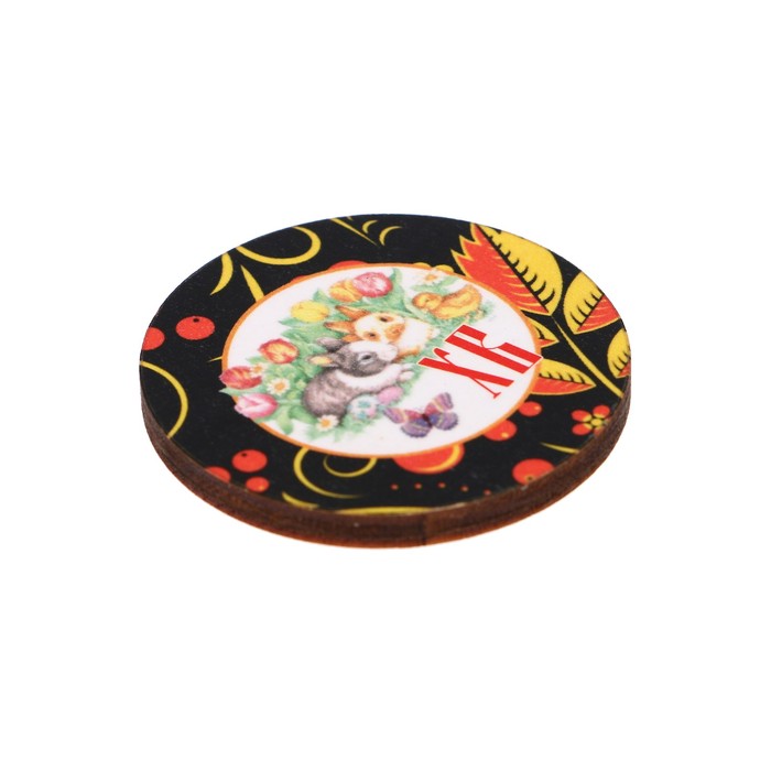 Магнит "ХВ" кролики, тюльпаны, хохлома; ассорти, 40 мм