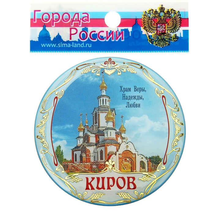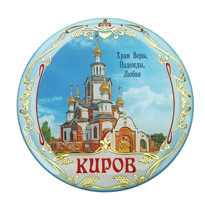 Магнит «Киров, Храм Веры, Надежды, Любви» – приятный сувенир для каждого. Магнит с ярким дизайном и золотистой лентой привлечет внимание всех. Если прикрепить его к металлической поверхности, например, к холодильнику или микроволновой печи, он отлично впишется в любой интерьер кухни и не только.