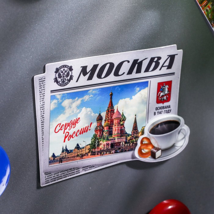 На магните изображён храм Василия Блаженного — главный собор столицы России. Он создан в середине XVI века по велению царя Ивана Грозного и с благословения митрополита Макария. Неповторимый архитектурный шедевр возведён под руководством русских зодчих, Постника и Бармы, в честь победы над Казанью. Строили храм пять с половиной лет — с 1555 по 1561 год.