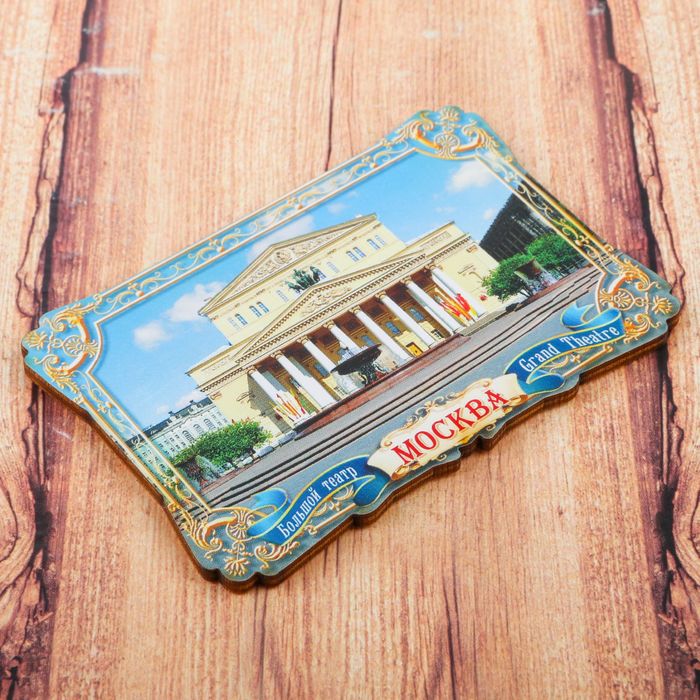 На сувенире изображён Большой театр — один из крупнейших в России и один из самых значительных в мире театров оперы и балета. Комплекс зданий театра расположен в центре Москвы, на Театральной площади.