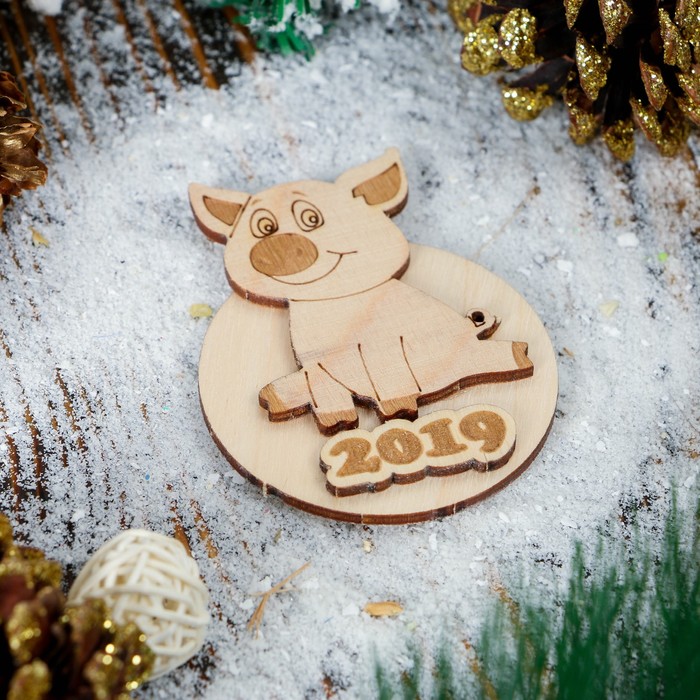 Магнит новогодний "Хрюшка Гектор", фанера, 7 см