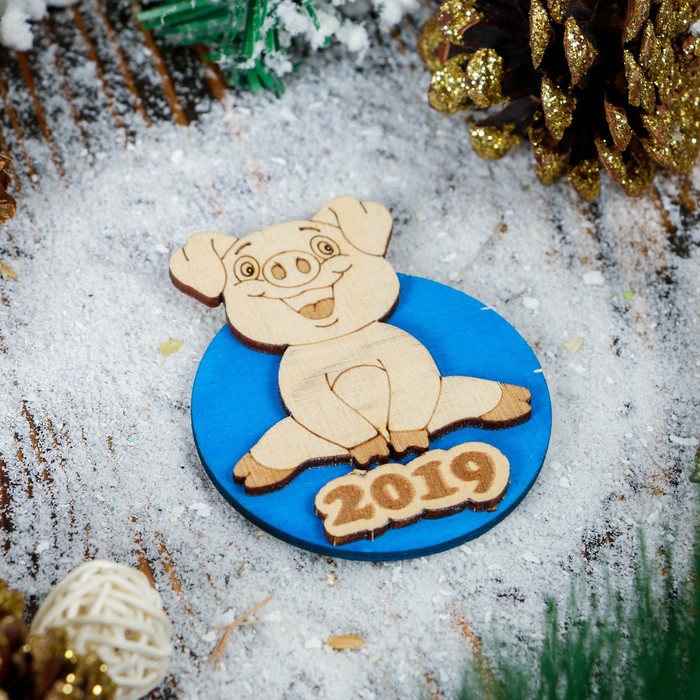 Магнит новогодний "Хрюшка Кики", фанера, 7 см, синий