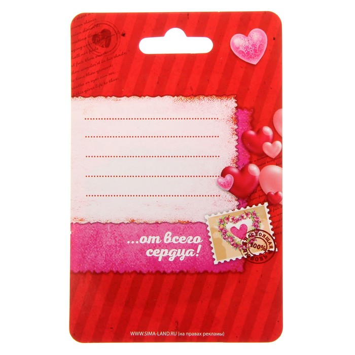 Магнит с тиснением преподносится на индивидуальной подложке-открытке. На задней стороне вы можете написать нежные слова или признаться в своих чувствах.