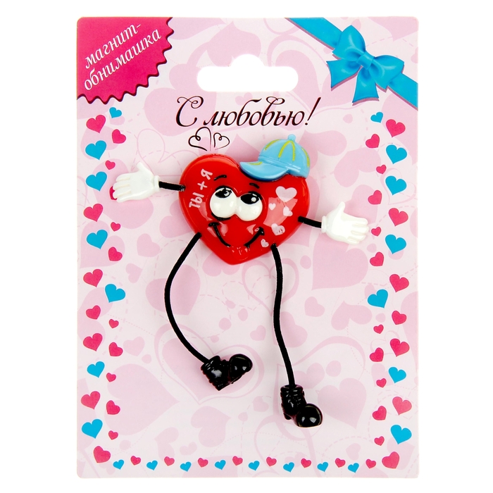 Магниты-обнимашки — популярный тренд среди романтических сувениров. С таким подарком обожают играть дети и взрослые, ведь ножки и ручки изделия двигаются свободно. Милое сердечко и тёплые слова никого не оставят равнодушным. Дарите его возлюбленным, друзьям или родственникам.