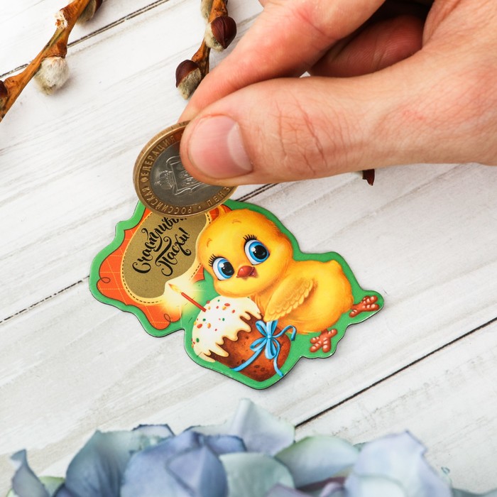 Магнит полимерный со скретч-слоем "Цыплёнок с куличом"
