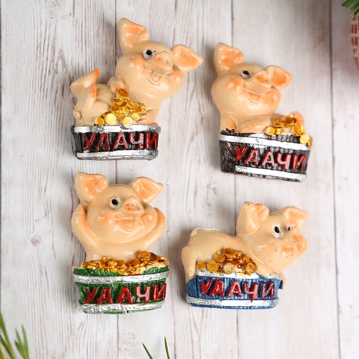 Магнит полистоун "Хрюша в кадке с золотом" МИКС 4,5х4,5 см