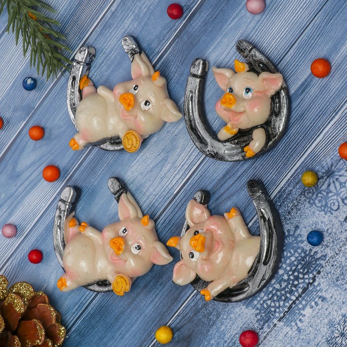 Магнит полистоун "Хрюшка в подкове" МИКС 5х6,5 см