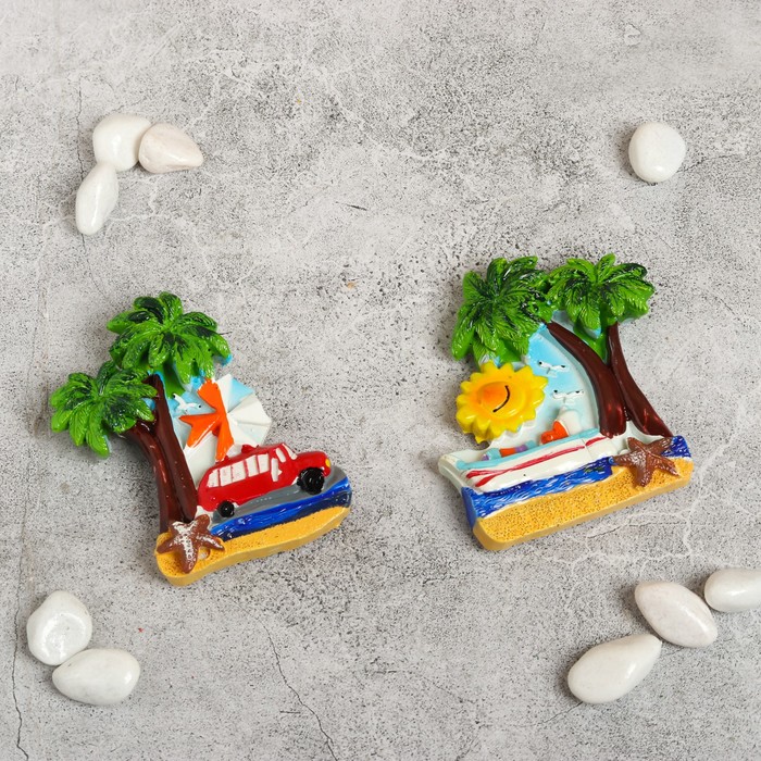 Магнит полистоун "Отдых под пальмой" МИКС 7,5х6 см