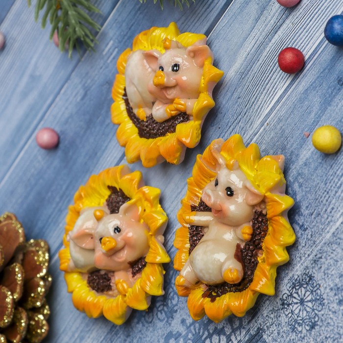 Магнит полистоун "Поросёнок на подсолнухе" МИКС 4,5х4,8 см