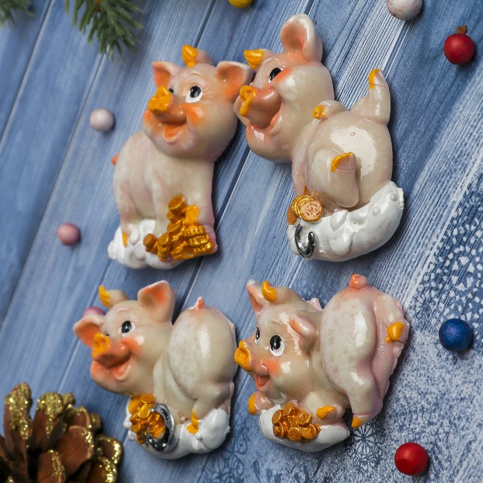 Магнит полистоун "Свинка на облачке с монетами" МИКС 6,2х5,6 см