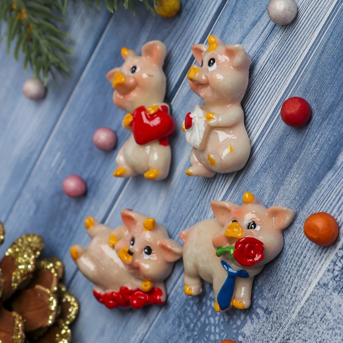 Магнит полистоун "Влюблённый поросёнок" МИКС 4х2,7 см