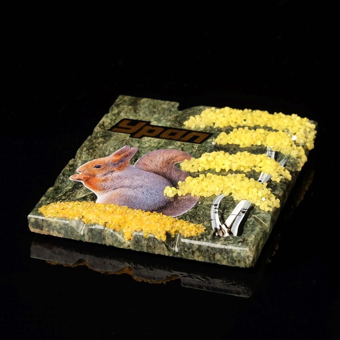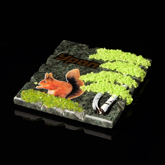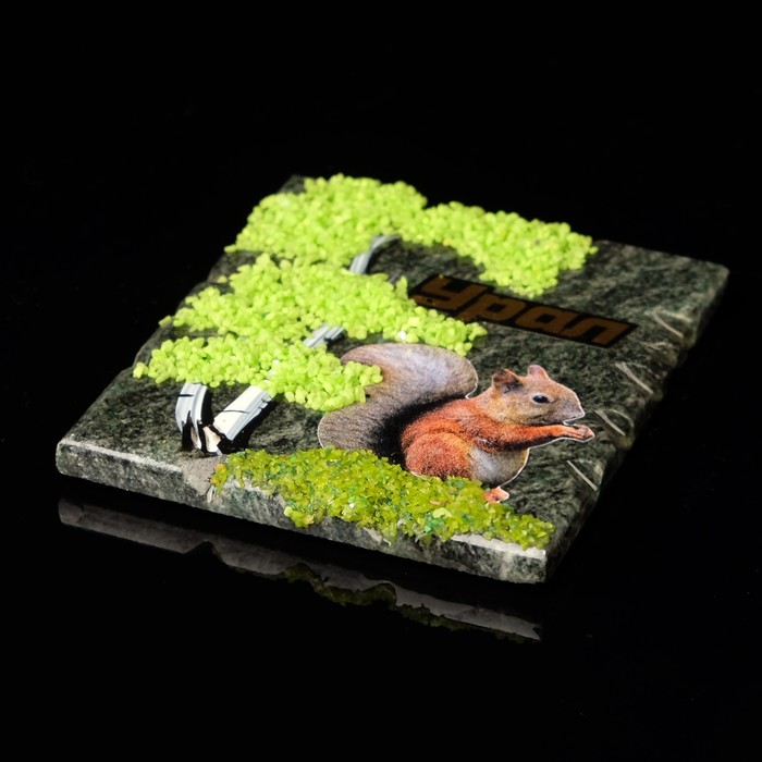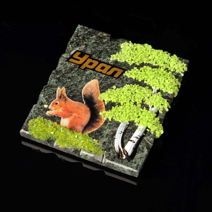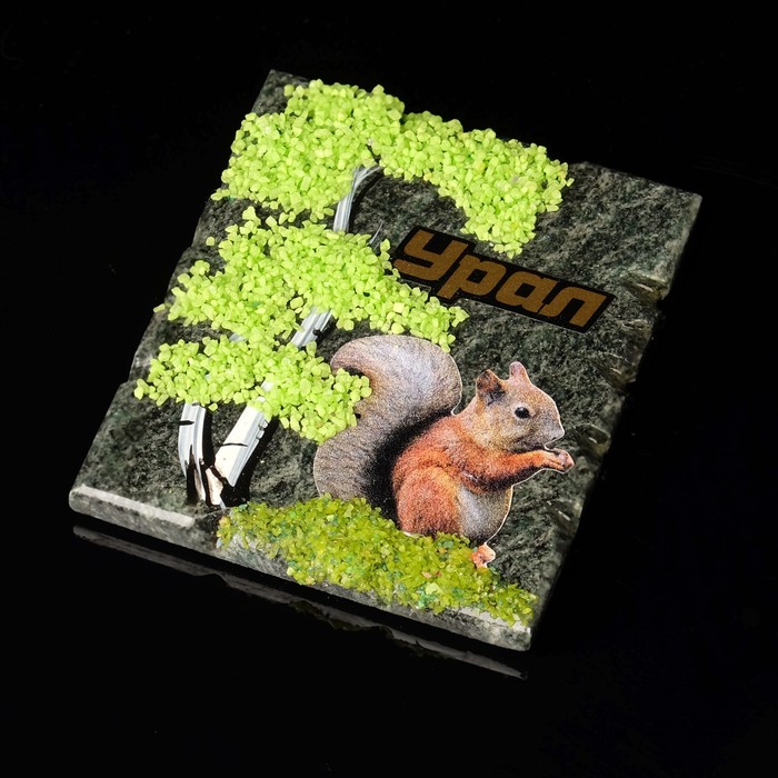 Магнит с деревом и наклейкой "Белка", змеевик, микс