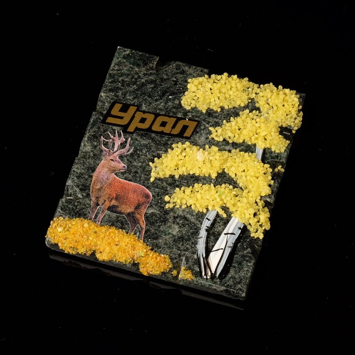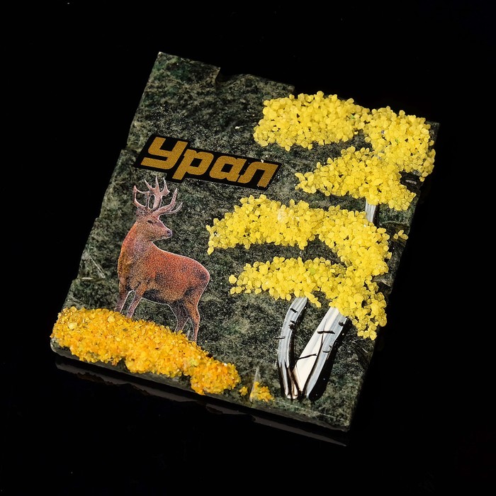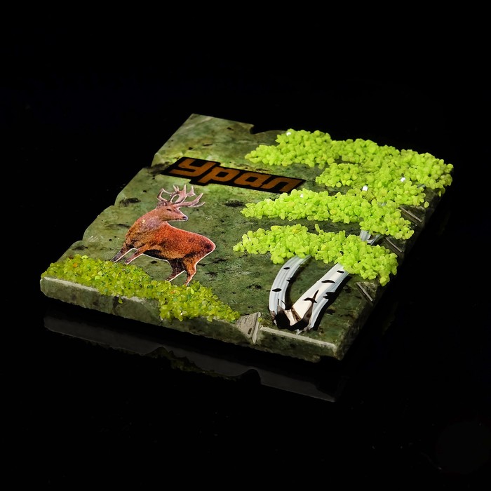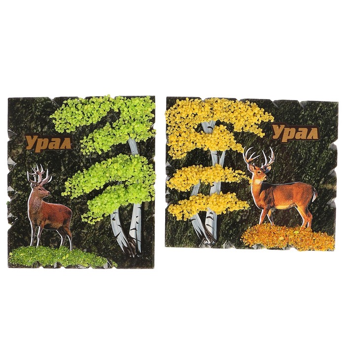 Магнит с деревом и наклейкой "Олень", змеевик, микс