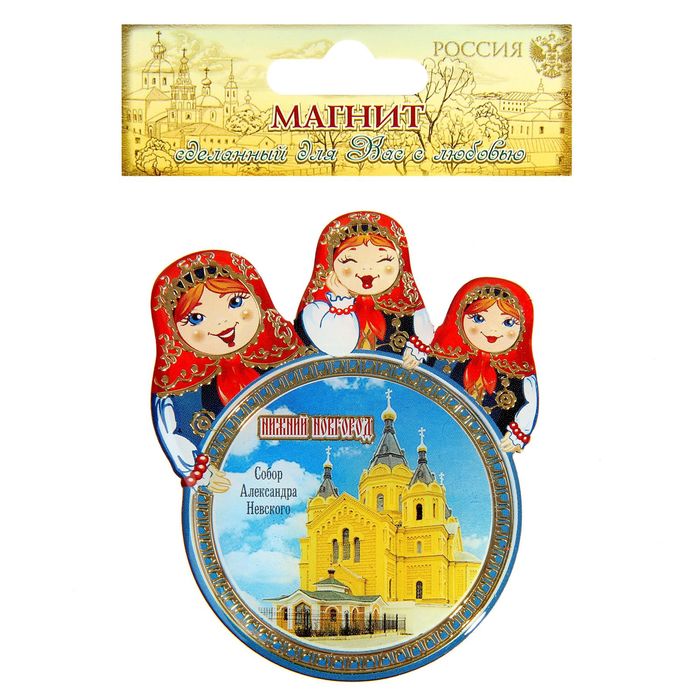 Магнит с матрёшками «Нижний Новгород. Собор Александра Невского»