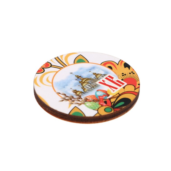 Магнит "С Пасхой" вербы, храм, хохлома; ассорти, 40 мм