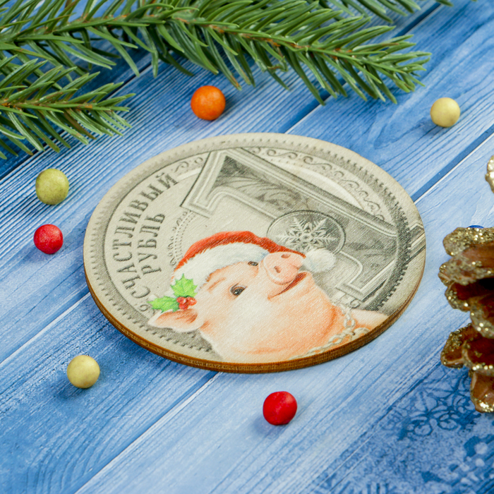 Магнит "Счастливый рубль" из фанеры, УФ-печать, 7,5х7,5 см