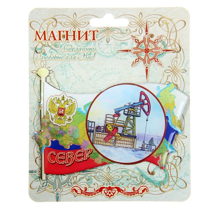 Магнит в форме флага «Север» — отличный сувенир для родных и друзей. Он будет привлекать внимание и напоминать о состоявшейся поездке. Заливка изображения смолой защищает его от царапин и потёртостей. Магнитик поставляется на оригинальной подложке.