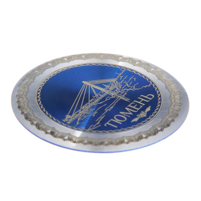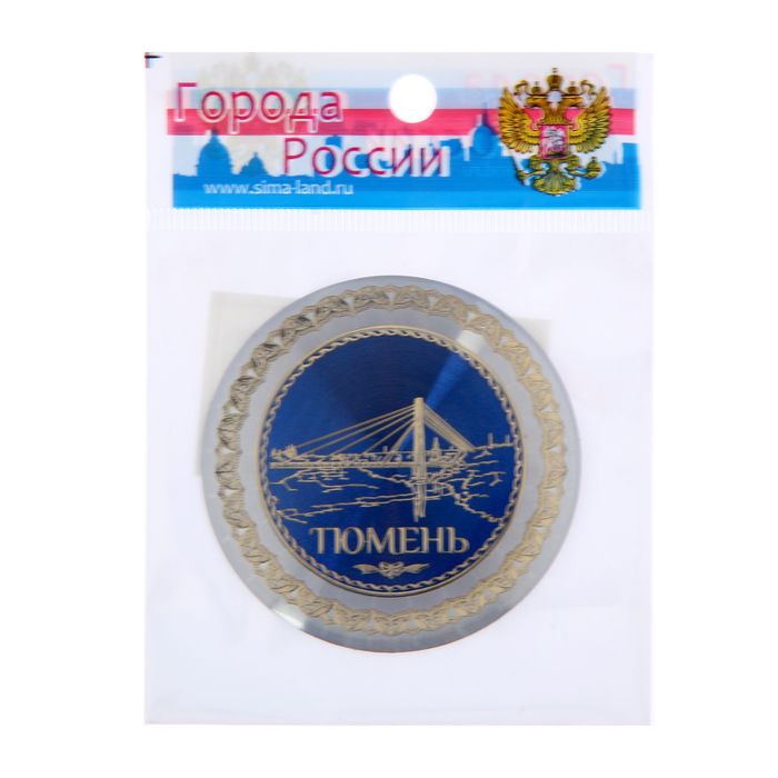 На сувенире изображён «Мост влюблённых», который соединяет два берега тюменской реки Тура. Построенное в 80-е годы ХХ века сооружение получило своё романтическое название сравнительно недавно — в 2003 году. Тогда здесь проходил конкурс на самый долгий поцелуй. Сегодня данный объект занесён во все справочники и путеводители столицы Западной Сибири.
