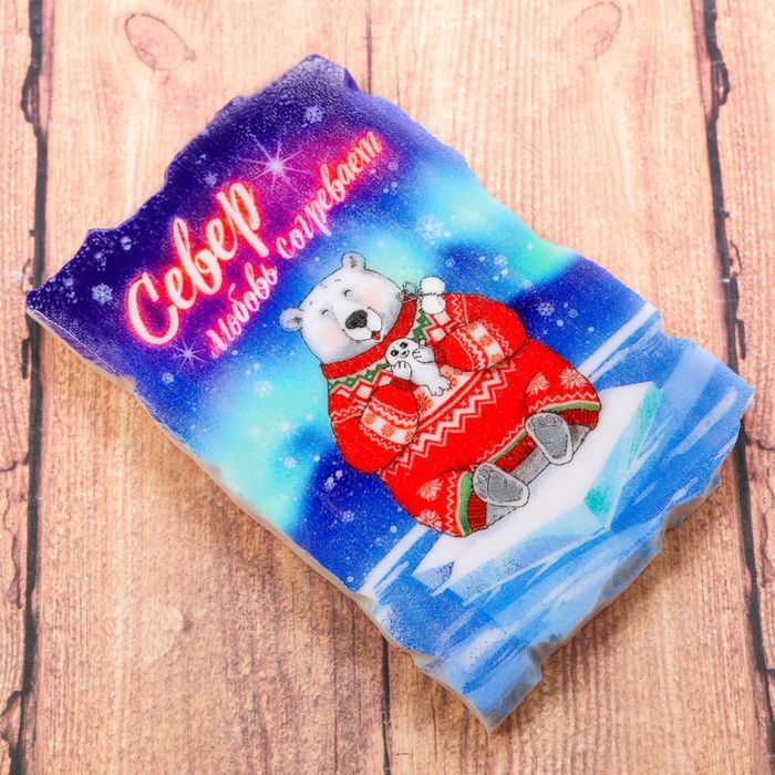 Магнит в форме фрески «Север. Медведь на льдине», 8 х 5 см