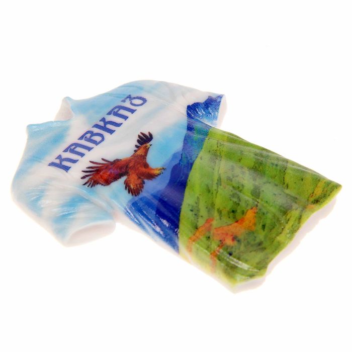 Сувенир выполнен в форме объёмной футболки. Этот сувенир посвящён Кавказу — удивительному краю тёплого солнца и высоких гор, ледников и плодородных равнин, уникальных древних традиций и бесконечного гостеприимства. Этот большой регион, разделяющий два мира, Европу и Азию, окутан множеством мифов, преданий и легенд.
