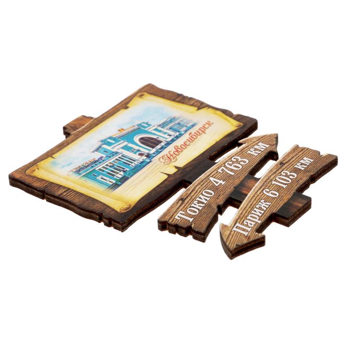 Магнит в форме указателя «Новосибирск» изготовлен в России из натурального материала — дерева.