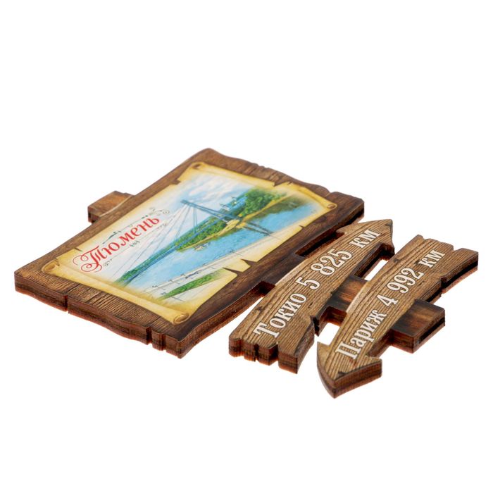 Магнит в форме указателя "Тюмень" изготовлен в России из натурального материала — дерева.