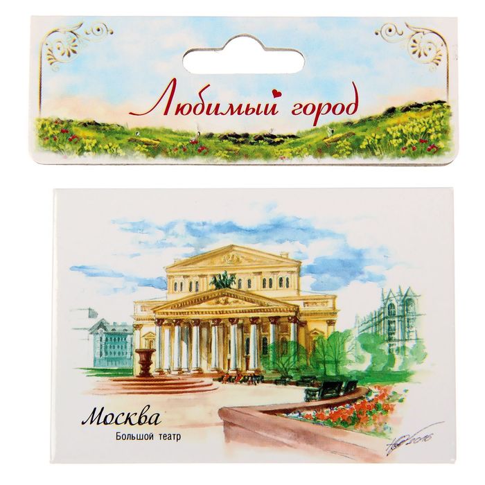 На сувенире изображён Большой театр — один из крупнейших в России и один из самых значительных в мире театров оперы и балета. Комплекс зданий театра расположен в центре Москвы, на Театральной площади.