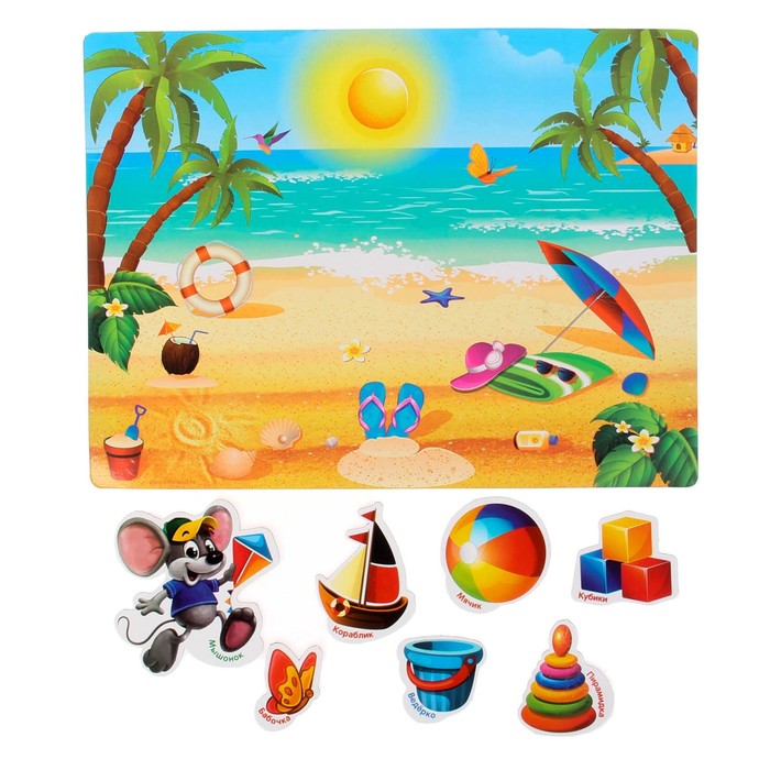 Магнитное игровое поле двухстороннее "Зверята" + набор магнитов