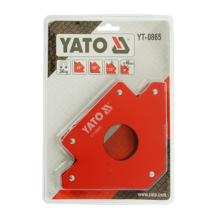 Магнитный держатель для сварки YATO, 122х190х25мм, 34кг, углы 45/90/135°