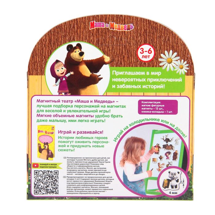 Пазл представляет собой игру-головоломку, в которой необходимо составить картинку из большого количества фрагментов. Сборка такой мозаики не потеряла свою популярность благодаря разнообразию её видов и изображений. Магнитный театр «Маша и Медведь: В гостях у Миши» поможет с пользой провести досуг, а также поспособствует развитию цветового восприятия, логического мышления и мелкой моторики.