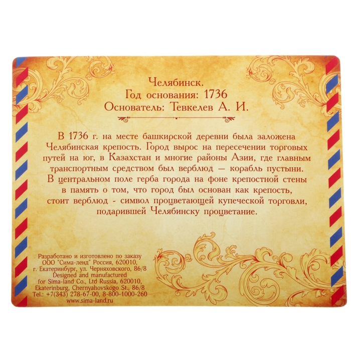 Коллекционная марка на открытке "Челябинск" – это уникальный подарок и эксклюзивный сувенир. Марка изготовлена из металла, на лицевой стороне выбита поздравительная надпись. Крепится на яркой адресной открытке с эксклюзивным дизайном, на которой вы можете написать свое имя и имя получателя. На оборотной стороне открытки написано теплое пожелание, которое, безусловно, порадует ваших близких.