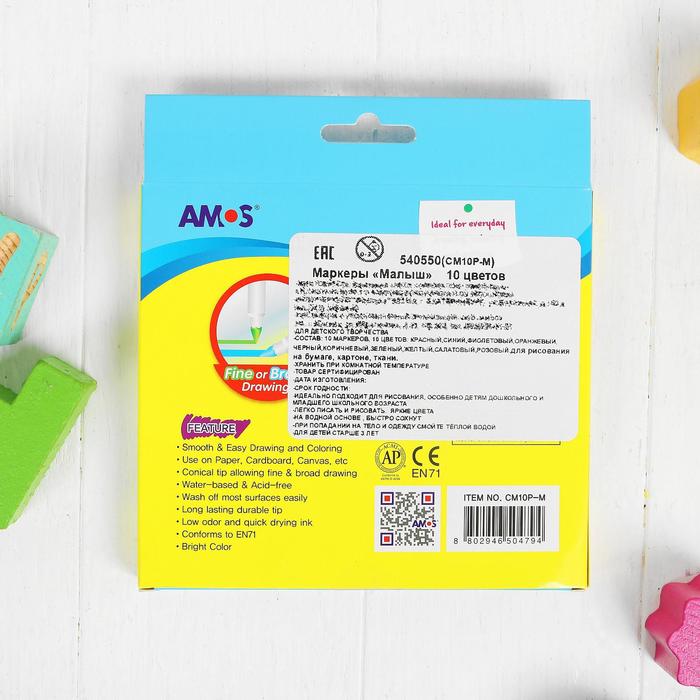 Маркеры смывающиеся водой "Малыш", 10 цветов