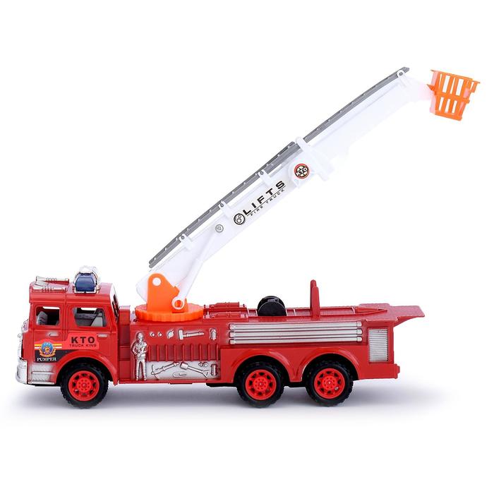 Автомобиль спецслужбы с первых секунд привлечёт внимание будущего пожарного. Крохе понравится, что у техники выдвигается и вращается лестница, изменяется угол наклона люльки.