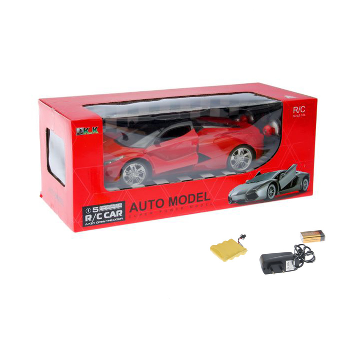 Нажмите кнопку на пульте, и у машины откроются двери. Запустите игрушку и направляйте её вперёд, назад, вправо и влево. Спорткар мгновенно разовьёт скорость, будет освещать свой путь яркими фарами и с лёгкостью обойдёт все препятствия — сынишка будет в восторге!