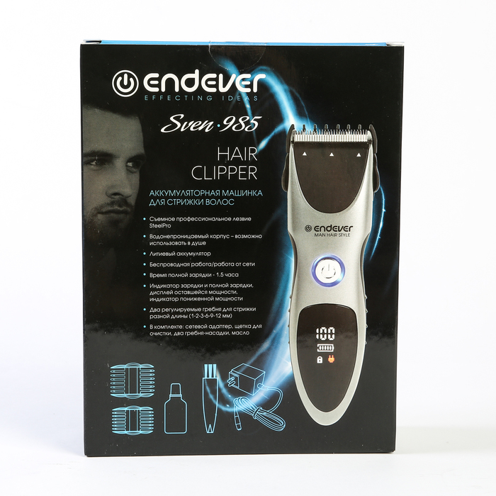 Машинка для стрижки Endever Sven 985, 2 насадки, беспроводная/сеть, серебристый