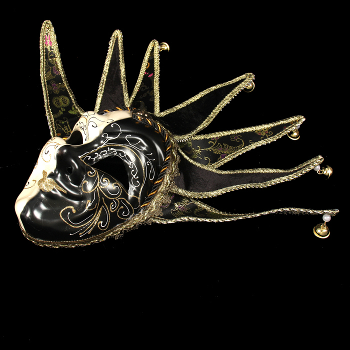 Маска интерьерная "Венецианская. Шут" чёрно-белая 32х40х14 см