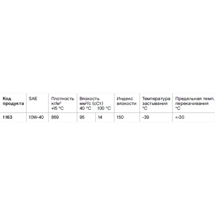 | Вязкость по SAE | 10W-40 |