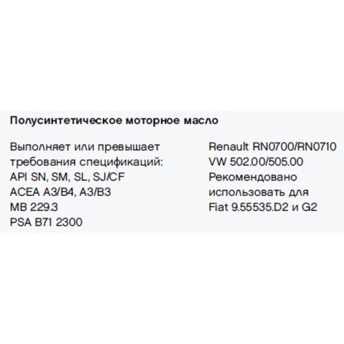 | Тип масла | Полусинтетическое |