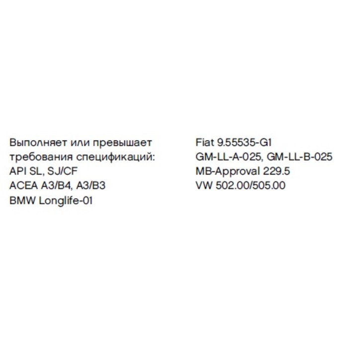 | Вязкость по SAE | 5W-30 |